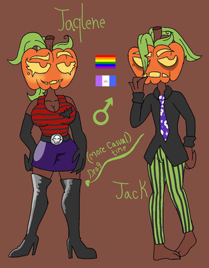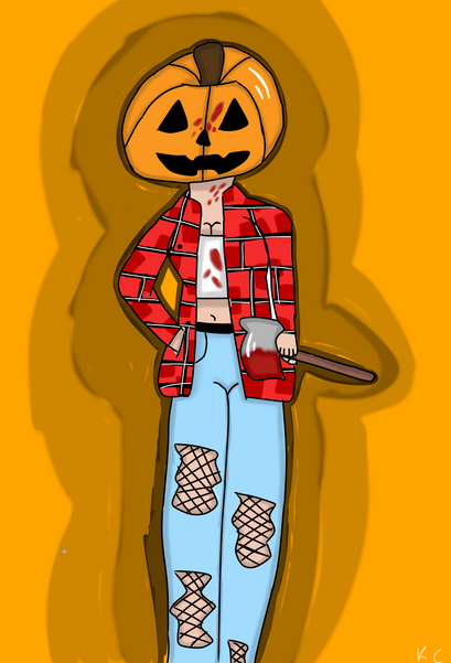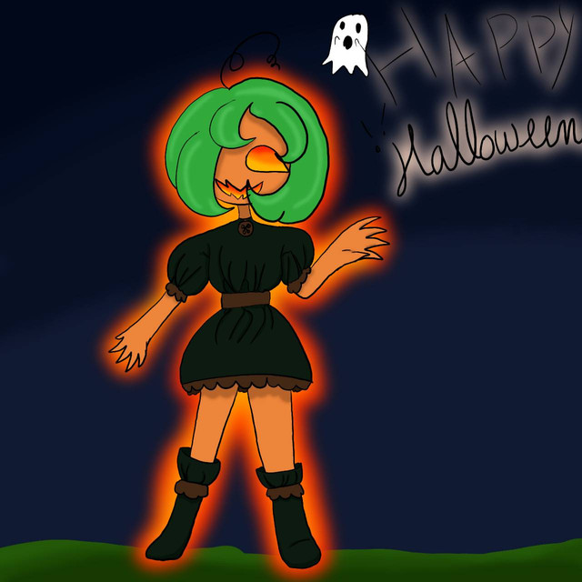 She's a pumpkin girl and also a scientist, pumpkin people are a sub-species of cactus people that live in the dark forest, they are very quiet most of time and are very intelligent, they like scary things and are also very emotional, the species does in fact have genitalia but often don't mate since they are too socially akward to mostly get a relationship, and people think they are scary, most of them are vegan and care about nature, they do not really have homes, they live outside mostly