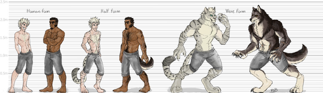 WEREWOLFWerewolves are a noble race of beastfolk who live in harmory with nature. Werewolves highly value loyalty, and thus have a strong bond of family, Pack, and friendship. Werewolves are just regular beastfolk until they to undergo a spiritual journey under a full moon. When they awaken from their meditative trance, they are able to shapeshift into a dire-wolf and a humanoid (most choose humans because of the similar size and build). Werewolves are brave warriors, but prefer to walk the path of peace. They're also skilled hunters and herbalists.