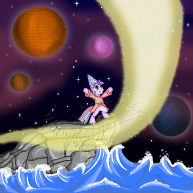 The My Little Pony: Friendship is Magic show and all characters within are re-imagined by Lauren Faust; inspired by the originals by Bonnie Zacherle. All are © Hasbro and its subsidiaries. "Bully for Bugs", Looney Tunes, Toro the Bull, Bugs Bunny, and all associated characters are © Warner Bros and its subsidiaries.
