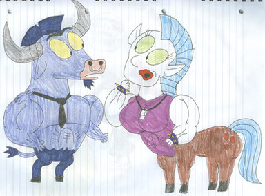 One of my favorite cartoon scenes is the "Slap dance," found in the 1952 Chuck Jones Looney Tunes short "Bully for Bugs." It's only about 30 seconds long, yet it is considered one of the most famous scenes in cartoon history. As you can see, I cast Ironwill as Toro and Pinkie Pie as Bugs Bunny. I would have loved to see this scene play out in "Putting Your Hoof Down," instead getting of the "Wabbit season/ Duck Season" gag again.If you're familiar with the original cartoon, then while looking at this image, I think you can imagine the music (Las Chiapanecas) playing in the back of your mind.