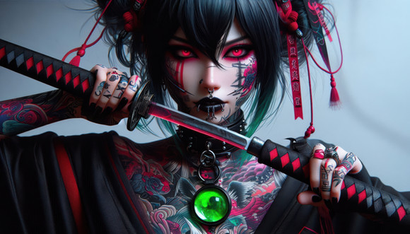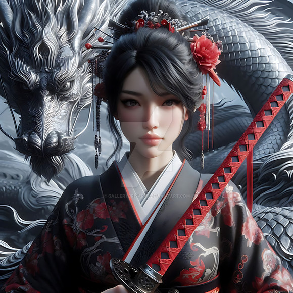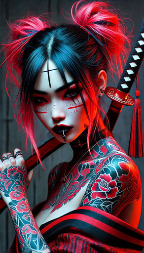 #digitalart #portrait #animegirl #digitalpainting #kimono #fanart #anime #characterdesign #beauty #originalcharacter #warrior #videogamefanart #tattoo