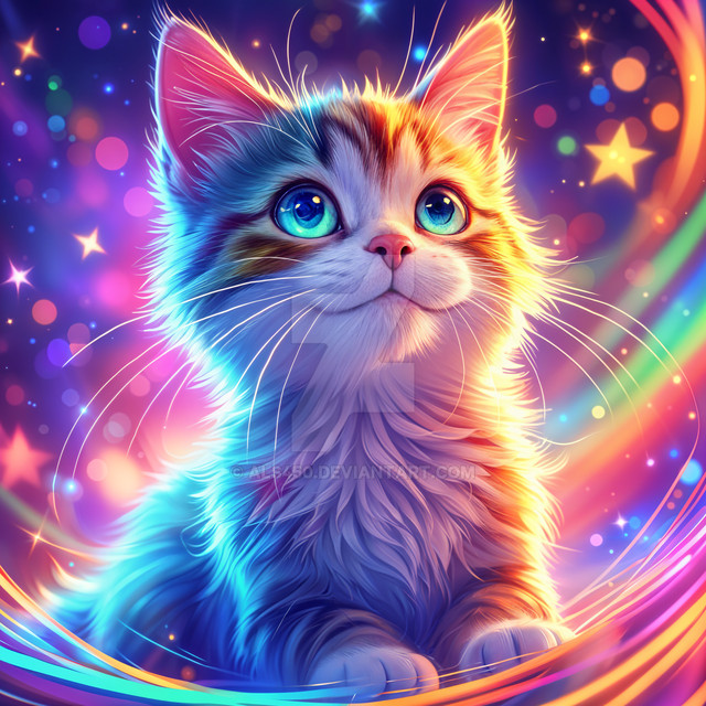 #digitalart #wallpaper #cat #animal #feline #kitty #animalart #cartoon #portrait #digitalpainting #surreal #space #neon #rainbow #fanart