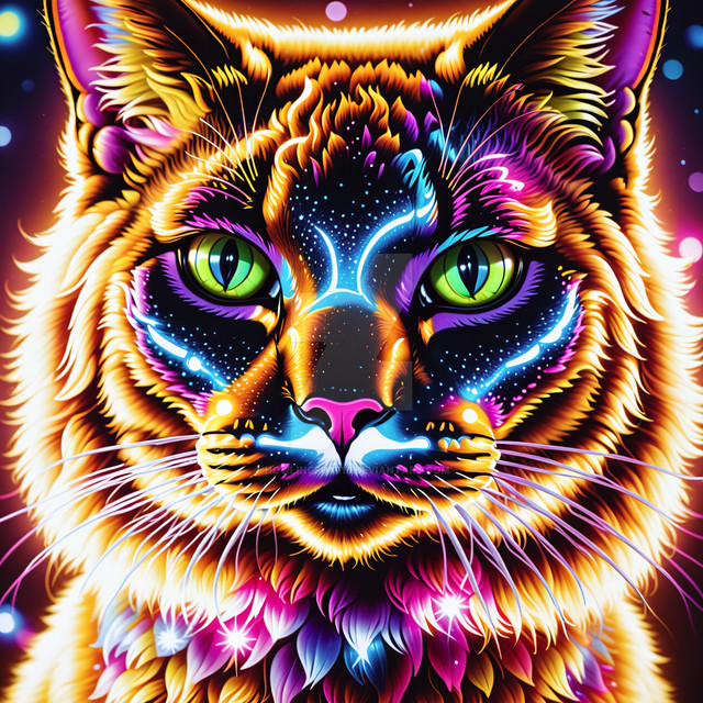 #digitalart #wallpaper #cat #animal #feline #kitty #surreal #space #neon #animalart #portrait #photography #adoptable #magic
