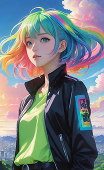 #fanart #anime #videogamefanart #cyberpunk #popart #digitalart #animegirl #wallpaper #rainbow #originalcharacter #scifi #animefanart #neon