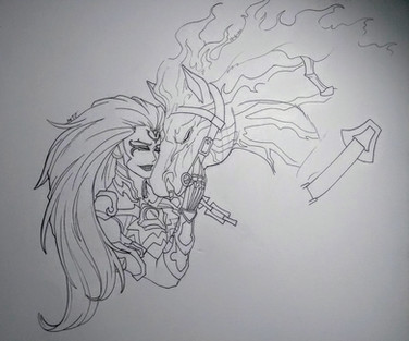 "A Horseman isn't defined by his horse" Maybe not... but Fury truly loved Rampage, her horse. The way she talked about him, especially randomly while running around the world... it was beautiful and heartbreaking. I literally felt my heart cry for him just as Fury's broken face was when she saw her horse moments before he died... The horses make up as Darksiders as the Horsemen do. War had to get his back, Death kept his, Fury lost hers... I swear if something happens to Strife's I am gonna die internally again. I always wanted to draw Rampage... but wanted to wait to when I could do a beautiful dedicated drawing for when I finished Darksiders 3. I finally did it.Related content