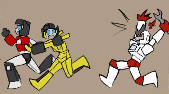 Ratchet: (knocks the twins off of him) GET BACK HERE! (runs after me)