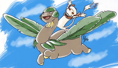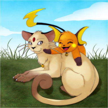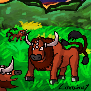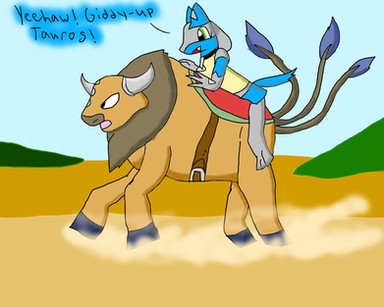 I give you a plusle and minun riding a tauros! : DKinda inspired by my mystery dungeon game. I always have minun and tauros on my team whenever I can. I also have a plusle but he's lower leveled and theres really no point in having a plusle and minun together. :< (same attacks and all that.)