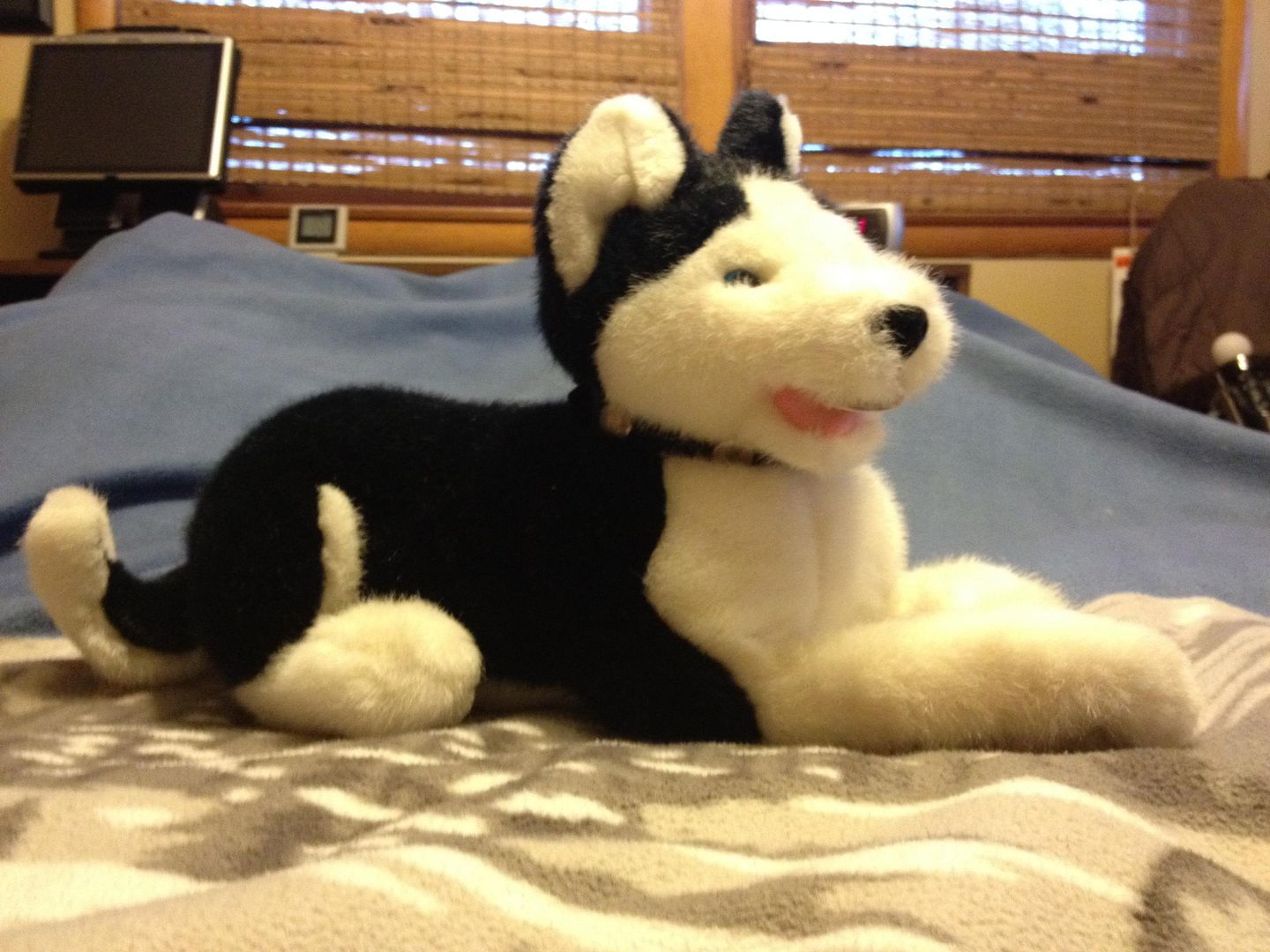 I found a plush that I swear looks almost exactly like him [link] (notice the collar with the studs. If he had black masks around the eyes he would look just like him). I'm always on the lookout for more Steele stuff.