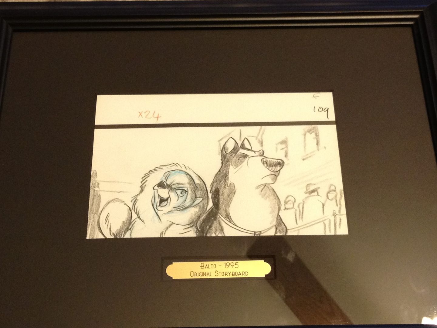 I also found a couple of awesome storyboards with Steele in them. [link] and [link] . These weren't cheap, and they are some of the last storyboards from the film. I've got a couple more with other characters ( [link] and [link] ). I've considered getting more, but they are so expensive. Also got this one I drew framed ( [link] [excuse the glare]). I also have both the American and UK Press Kit, as well as a press card signed by Kevin Bacon (I want one of Steele signed by Jim Cummings...)