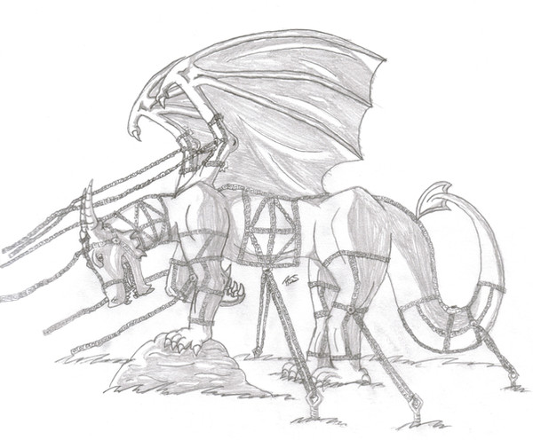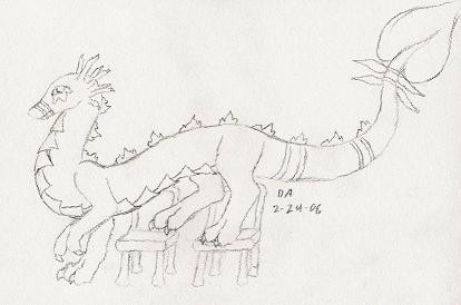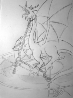 Let's just say that I have been having a shitty morning and I feel like no matter what I do it's wrong. Aaarrrggghhh....my life right now sucks....Anyway this is just a basic sketch, notice how the chains are circles instead of actual chain links ya I know I'm lazy. I put it in scraps because it is extremly rough and is just a basic concept. Perhaps I may make a good copy of it if you think I should or want me to. I'd end up changing the dragon like giving him him wings, fixing his clas and evening stuff out and all that shit.