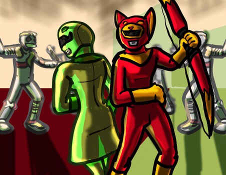 Crimson's and Kitrinos' turn in Power Ranger/ Super Sentai outfits!Related content