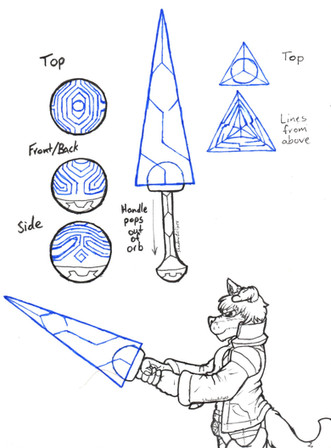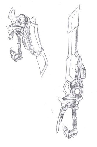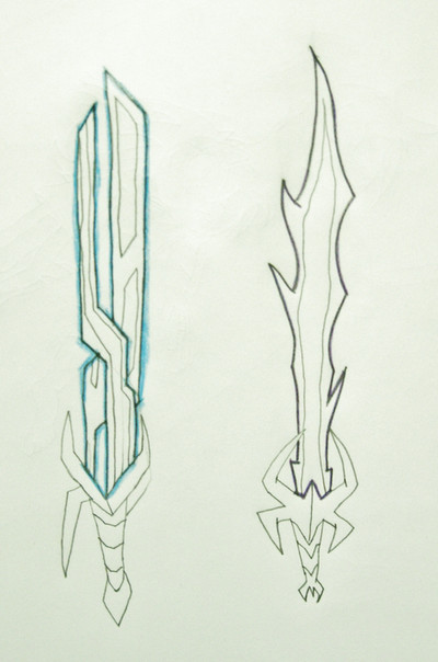 These are just two random weapon ideas I came up with last summer but never scanned in until recently.A energy sword and a crystal laser staff.