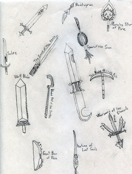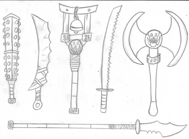 A bunch of weapons I designed.I love to design weapons!! Especially Fantasy and Anime weapons!
