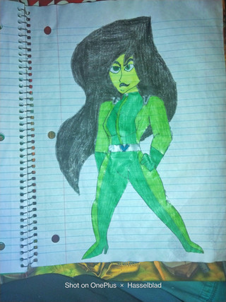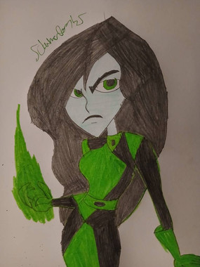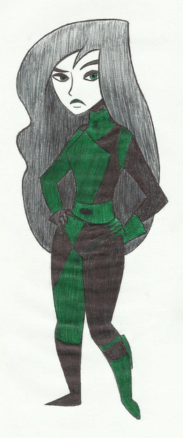Way back when I was really young I used to love Kim Possible, but my favourite character was always Shego. She was so coolHere's an old drawing I found and completed (wasn't coloured and no details in her suit). I made it using permanent marker and a green highlighter!