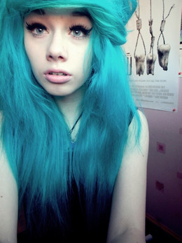I love where you have the blue in your hair, it looks great! And I also really like that you're looking down in this picture.