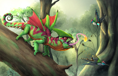 Very nice work! I love the color scheme, and the dewlap is a great touch! Great job on the scales! I love his wing pattern.