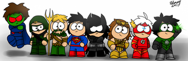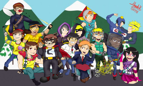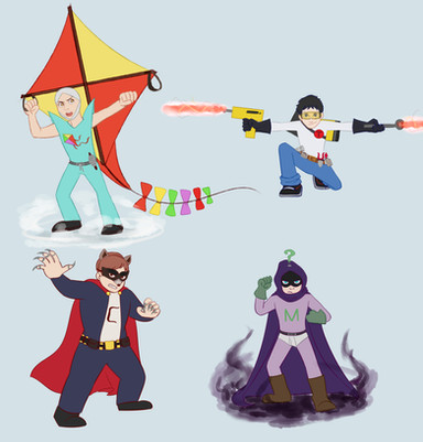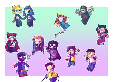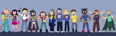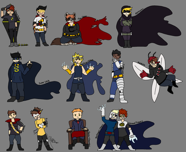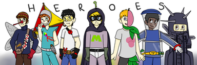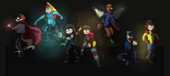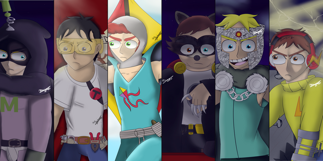 Characters in order (left to right):Mary Wincester, Castiel, Dean Wincester, Sam Wincester, Jack, Gabriel, Rowena, Lucifer.