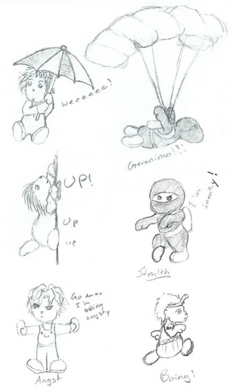 Mr. Rabbit has feelings, too D:for the stupidity, the other /uncrazy/ rabbit it saying, "atashi posuer" if you couldn't read it xD -bad handwriting-