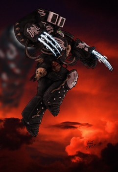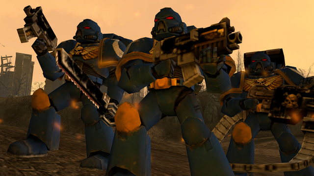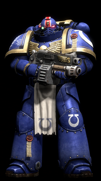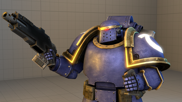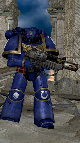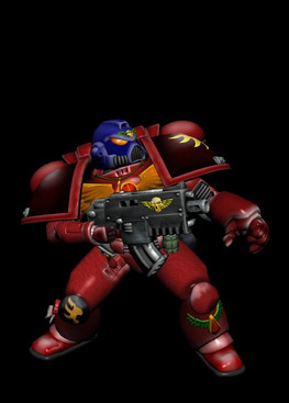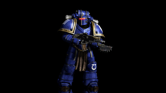 Ultramarines, 2nd company, tactical squad member, armed with a boltgun. Inspired by Games Workshop's Warhammer 40,000 tabletop war game. Made for the Half-life 2 mod Exterminatus ( [link] ).Model created in Milkshape 3D, materials made in Paint Shop Pro 8, rigged, posed and rendered in 3DS Max.