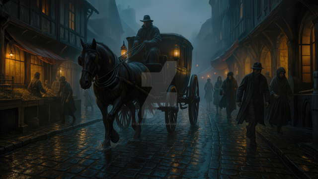#noir #digitalart #wallpaper #vintage #cobbles #fog #glow #horse #journey #lamp #misty #moonlight #night #rain #reflect #rider #shadow #silhouette #solitude #storm #street #timeless #umbrella