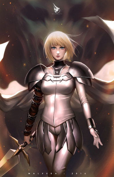 here you see a max level gear of an MMORPG of a female TANK