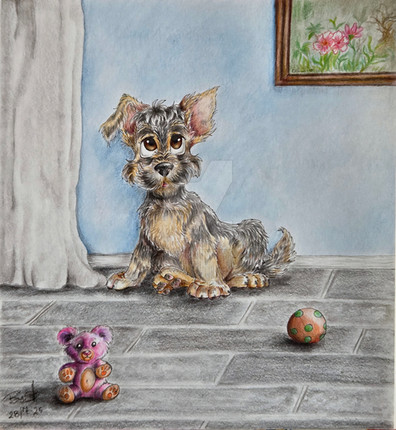If you didn't know, I live right outside of New York City and we got hit pretty hard by Hurricane Sandy. We didn't have power for about a week so out of boredom I drew a picture of my dog, Darcy, upset by the storm (because she really, really was).ink; colored pencil