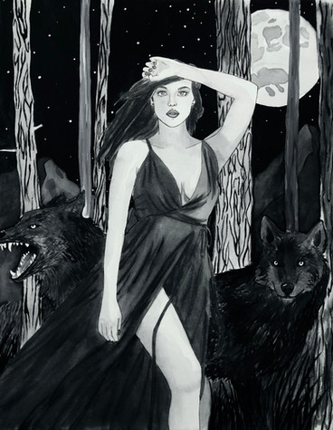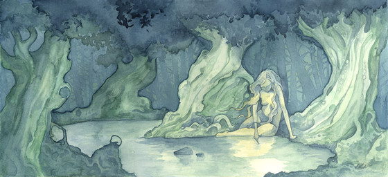 #laura #blue #brown #fantasy #forest #girl #painting #pelick #quiet #shadow #traditional #watercolor #wolf #wolves #woods