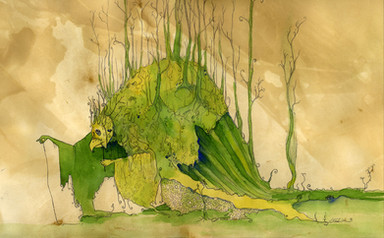 Trying a new color combination - a sketch of a figure that'll be part of another, larger watercolor.--