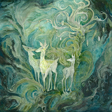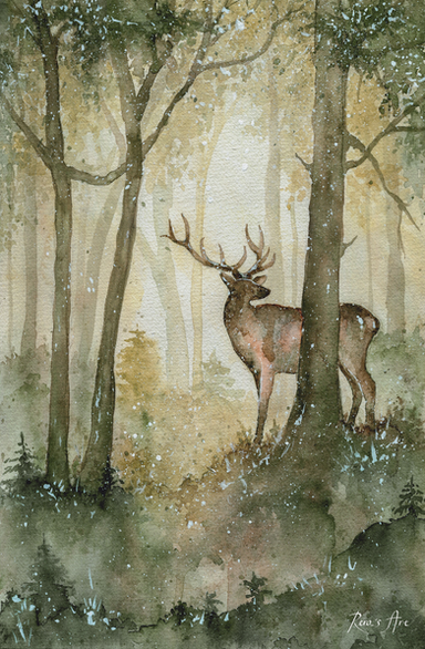 #animal #antlers #deer #fantasy #landscape #nature #sketch #spring #springtime #tree #watercolor #art