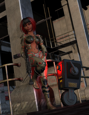 Ashari is well known for her skills as an Assassin, but you better never let her hear you call her that, she hates that word. She is a Contractor, and the best that money can buy. If you purchase her services you are guaranteed a complete job to your satisfaction. If you are on the receiving end or if you fail to pay the agreed upon price for her services, you can be assured that you will fully understand why she is the best there is.Her constant companion standing behind her is Sparky, her personal assistant, sparing partner and friend. If you are among those fortunate enough to contact Ashari concerning work you can be assured that you have talked to Sparky. Being that Ashari dislikes physical contact with those she is not being paid to eliminate, she had Sparky fitted with a voice modulator and a holographic generator that allows him to imitate her during holovid negotiations.