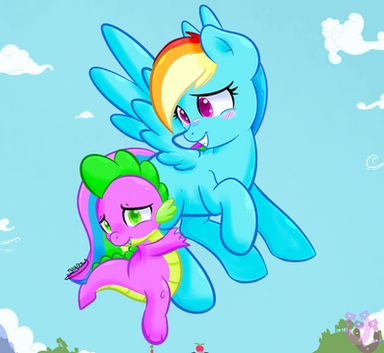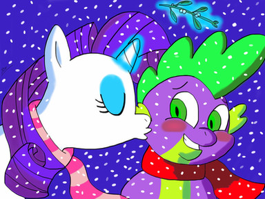 Rainbow Dash: Spike and Rarity doing whaaaat. *Rainbow Dash looked up from the fillies two see that Spike and Rarity as they were still kissing.*