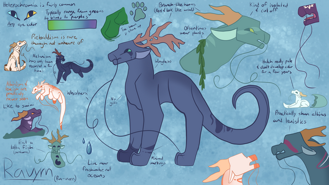 Koider was always shamed for their eyes and especially for the magic water that never seemed to leave their side, people thought them cursed or defective in some way. Many people called them a witch or devil. one group of dragonets around their same age even threw rocks and random stuff at them to mock them!! (which is how koider got that nick in their antlers) they ended up leaving their home for a taste of adventure and to get away from glaring eyes. Eventually, while wandering they became malnourished and dehydrated. They slept in a cave for days on end in a fever-dream, until a little blue fox brought them food and water and helped them regain strength. Koider and Ol' Blu have grown up together and now wander as friends. Koider can use the magic water around them as a breathe weapon if neededΒ