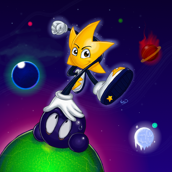 Heh heh, this one's cute. I never got to play Ristar on my Mega Drive unfortunately. I have an old poster of him still though.