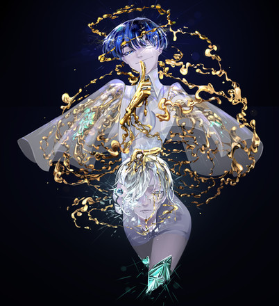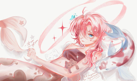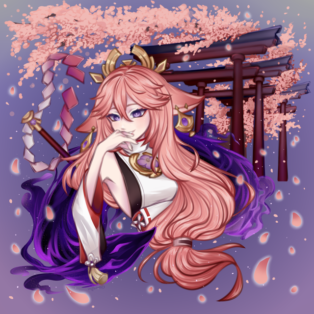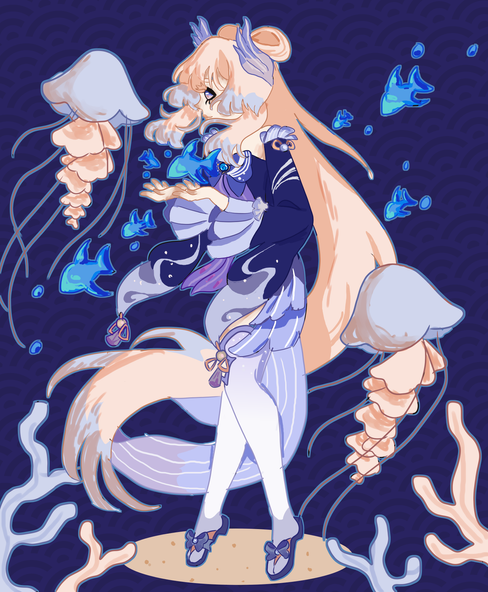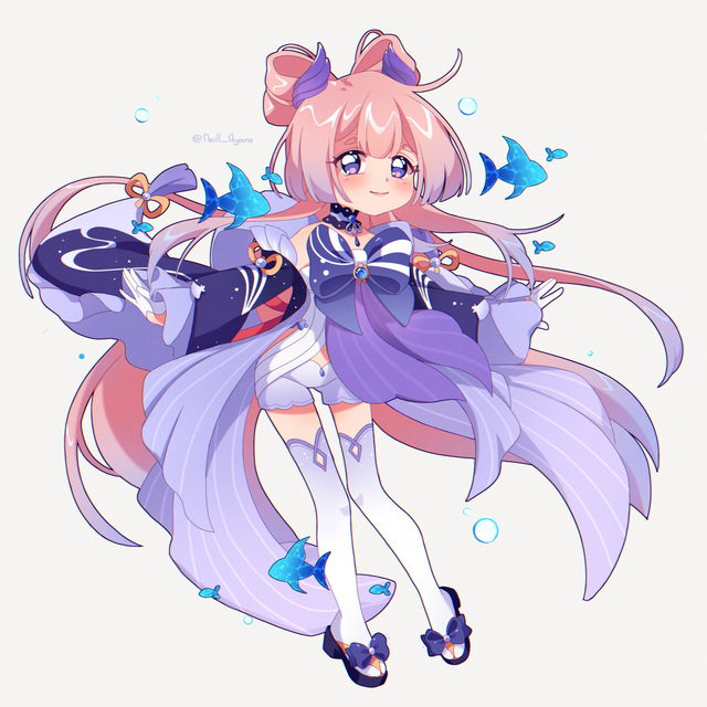 fanart for the game genshin impactthe character's name is Sangonomiya Kokomi