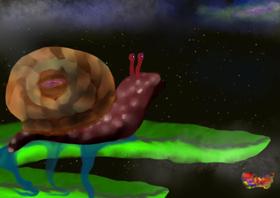 acrylic paint on canvasI don't know, I like snails. lol