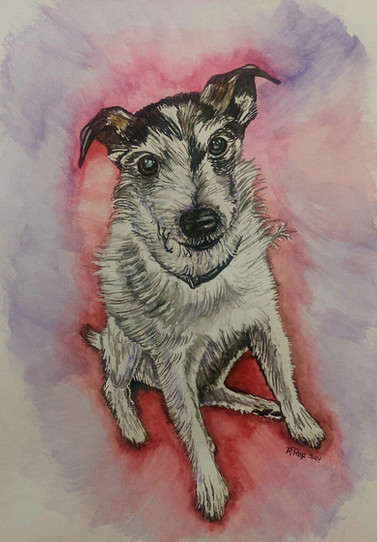 Doggy Portrait watercolor 8X10 for the wonderful lady who owns the local coffee shop were I live and is having a showing of my art their this week, If you live in Northern Indiana in the Huntertown area come check it out and bring in your photos of your pets for your own pet portrait! part of the proceeds will go to Fort Wayne Pet Food Pantry: