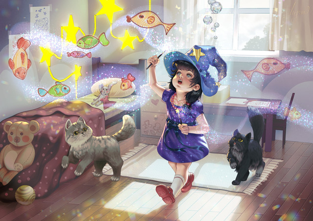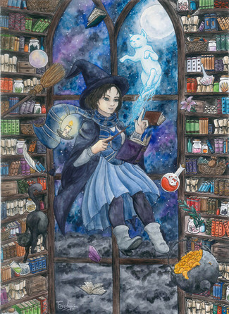 #books #cat #cozy #familar #fantasy #girl #glow #illustration #kitty #library #magical #magickal #reading #study #witch #witchy