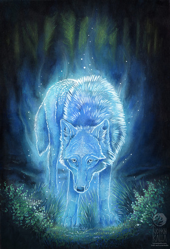 #animal #canine #coyote #fantasy #forest #glow #illumination #night #nighttime #path #pawprints #scene #wildlife #woodlands #digitalpainting