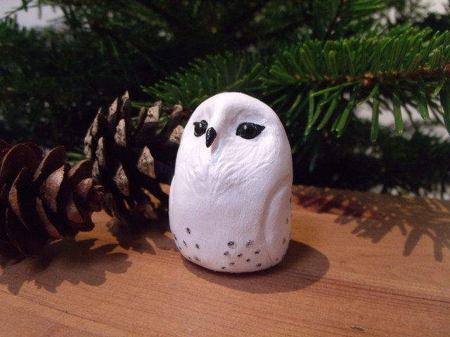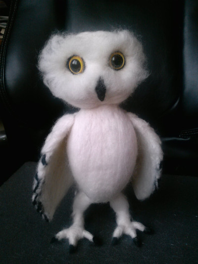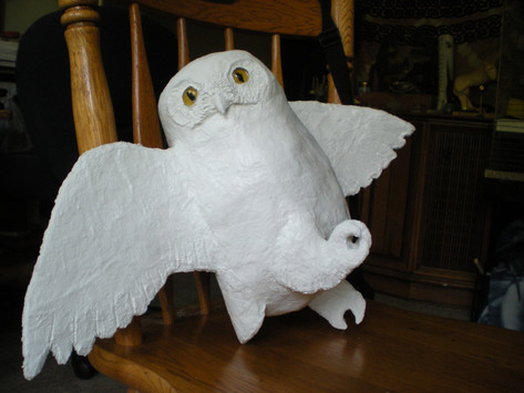 I've started painting her, I've also given her some eyelids as her eyes didn't look right to me before and alot of the snowy owl photos I've looked at they have either more oval eyes or their eyelids do show a little. Still a long way to go but its getting thereoh yeah from wing tip to wingtip she is about 26 inches long