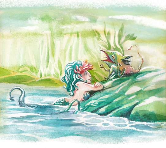 This actually will go along with my fairy story re-draws. Currently a work in progress. the water sprite/elementalΒ is inspired by a fancy guppy. The otter in the background is inspired by giant river otter and the bird is a dwarf oriental kingfisher. I plan to add some more animals, probably some turtles and frogs or something along those lines.Related content