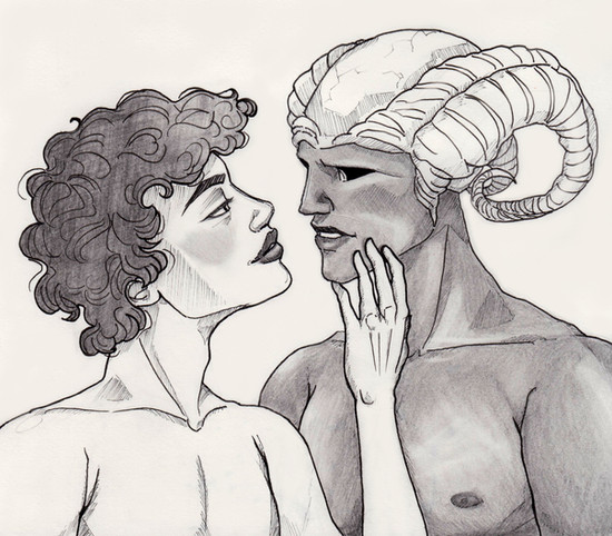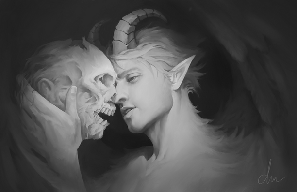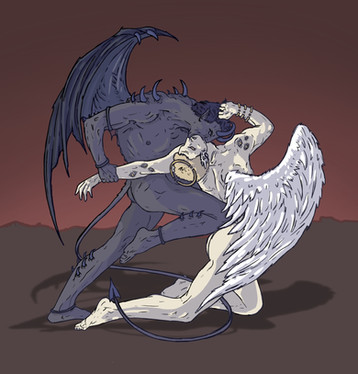 My characters Baphomet ( white demon ) and Moloch ( red demon ).