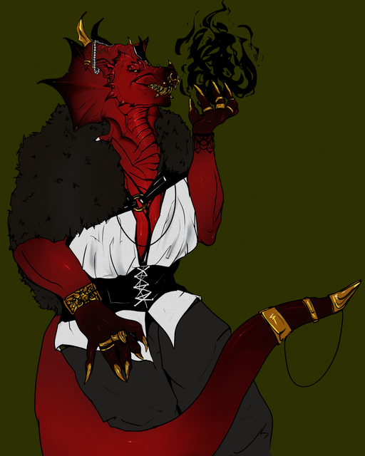 #anthro #digital #dragon #dragoness #female #goblin #pose #sit #sitting #art