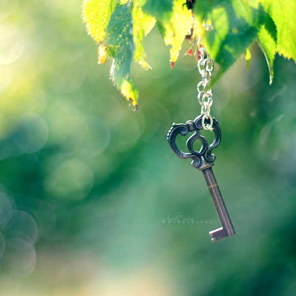 That's a gorgeous effect on the key, my favorite version among the set. The narrow depth of field lets the details stand out sharply while also having a nice and natural looking backdrop for it. The key is a lovely piece of craftsmanship, and you captured it very beautifully.