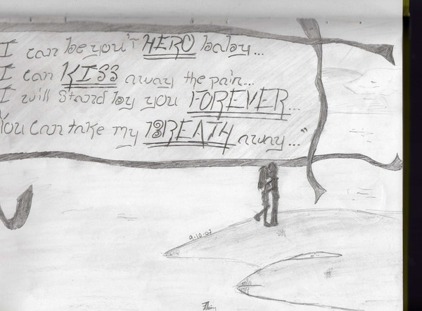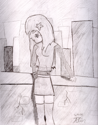 yeah i was looking through a comic book and saw a girl who was standing like this on a page. I wanted to draw somthing like it so i made my own person and drew her. Too me she looked lost so that's what i wrote.I love it. ^^'