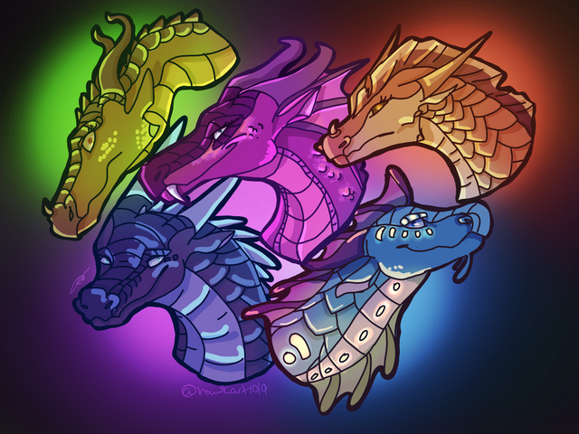 Backstory: As a dragonet, his mother and father were both apart of the royal council, and they were rather strict. They wanted him to be the best he could be. They taught him how to talk properly to others, especially other members of the royal council. He hated, having to talk to the members of the royal council. He thought it was so boring. He didn't want to be apart of the council like his parents wanted, Confidence wanted to explore Pyrriah, meet new dragons and see new things. Also, as a dragonet, he was made fun of for being dumb. He wasn't the smartest NightWing, but he never let the bullying and name calling get to him. He had just turned 10 a few days before the Night Kingdom got destroyed by the volcano. Once Confidence had found out they were staying in the Rainforest, he was more than happy to stay. His parents however, were rather disappointed about being ruled by a RainWing, and they were disappointed by Confidence's enthusiasm. They began telling him he wasn't a real NightWing, he would just shrug it off though. Once Darkstalker came to take the NightWings, Confidence stayed in the Rainforest. He loved the fruit, and the dragons in the forest. He befriended a ton of RainWings, and a few NightWings here and there. He loves to combine fruits, and meats to see if he can make awesome flavors with them, and he loves making food for others. Confidence loves the Rainforest, he also is hoping to explore the rest of Pyrriah to meet new dragons, and maybe find different things to make different foods with.