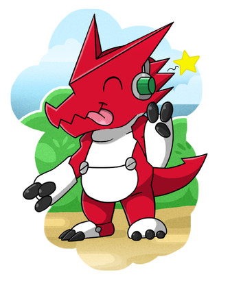 Aw, such a cute drawing. An oversized pillow for one very small, but super cute, Guilmon.
