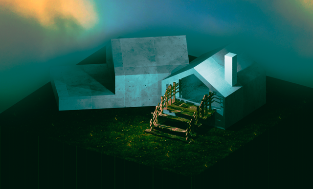 Frame from surreal liminal animation.Speed render - 30minΒ