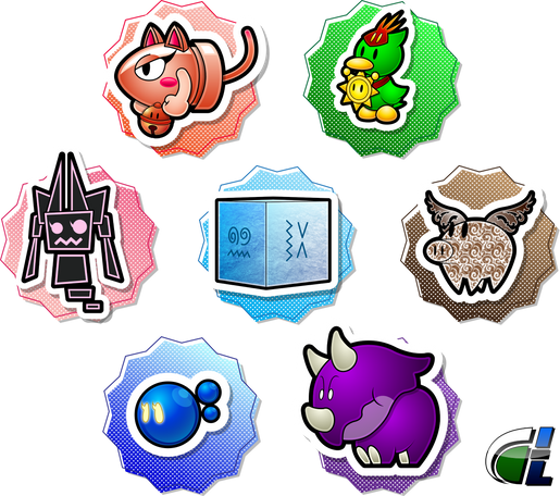 The Pink Pearl, Blue Sword, Dark Disk, and Corrupted Chevron in a sort of medallion case thing.