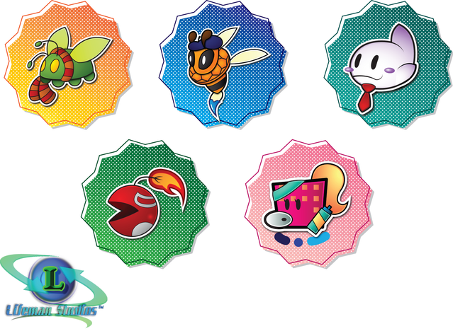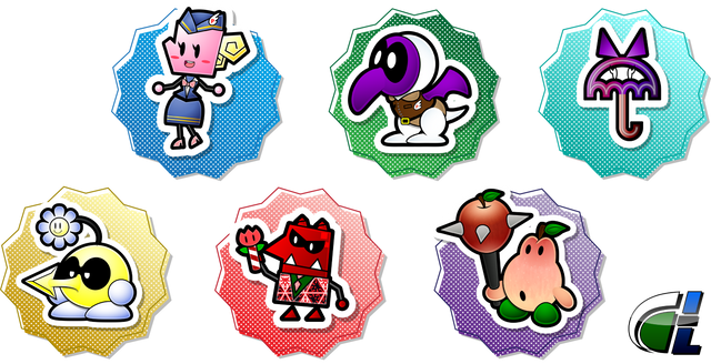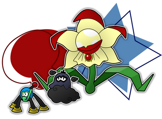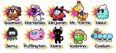 From left to right:Jellyfish Girl (M&L: Superstar Saga), Sammer Guy (Super Paper Mario), Spirit of Cuteness (Yoshi Topsy-Turvy)