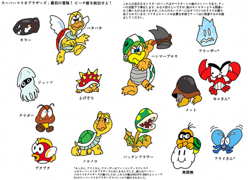 Boney Bettle (Paper Mario), Cheep Cheep (Super Mario Bros.), ComBat (Yoshi's Story),